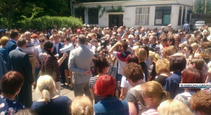 В оккупированной Керчи рабочие предприятия «Керченский металлургический завод» вышли на митинг: около двух сотен работников предприятия требуют выплатить долги по зарплате.