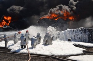 Спасатели третий день пытаются погасить пожар на нефтебазе "БРСМ-Нафты" в Васильковом районе Киевской области. Сейчас используют пену. Продолжают гореть три цистерны.