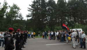 Активисты встречали крестный ход УПЦ МП под Житомиром красно-черными флагами, гимном Украины и лозунгами "Слава Украине".