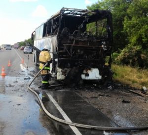 Пассажирский рейсовый автобус "Сочи – Севастополь", загорелся сегодня в первой половине дня на трассе у Белогорска в оккупированном Крыму.