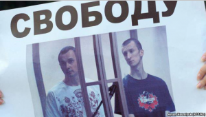 В Киеве вечером в четверг прошла акция солидарности с украинскими политзаключенныим, крымчанами Олегом Сенцовым и Александром Кольченко, которые уже год находятся в российской тюрьме по незаконному об...