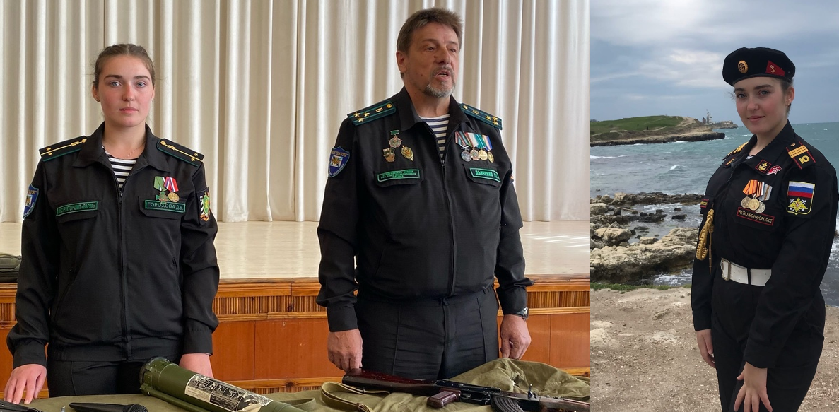Дар’я Горохова та Олександр Дьяченко проводять урок мужності у сімферопольській школі 25 Фото: sun9-16.userapi.com