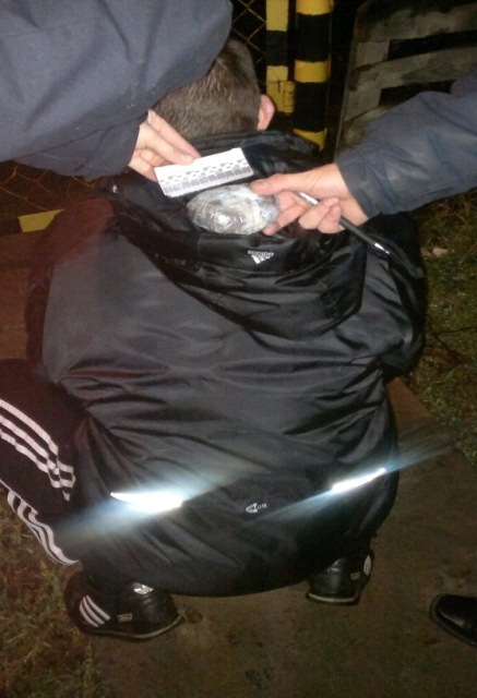 По ее информации, во время патрулирования внешнего периметра колонии был остановлен мужчина. У задержанного в капюшоне был обнаружен и изъят полиэтиленовый пакет белого цвета с картошкой, в котором был найден и изъят один полимерный флакон емкостью 10мл. с веществом светло-коричневого цвета.