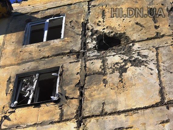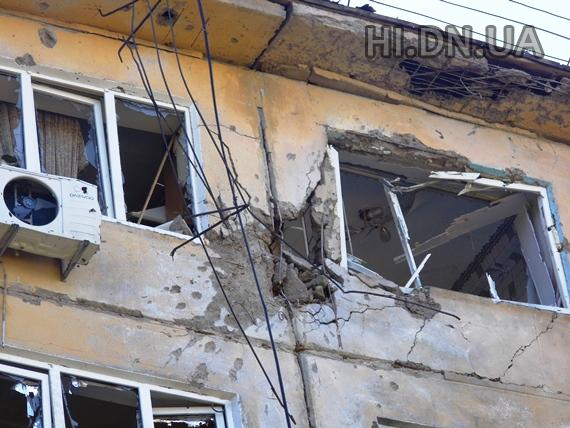 Стоящие рядом дома №32 и 34 по ул. Б. Хмельницкого получили серьезные повреждения- взрывом снесены два балкона, разрушены две квартиры, выбиты все окна. В доме №7 по этой же улице тоже несколько прямых попаданий. Одна из квартир разрушена полностью. На проспекте Мира, 10 одна из квартир, в результате попадания снаряда осталась без стены.