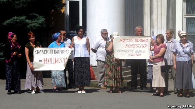 Митингующие в Симферополе приравняли Киевский патриархат к нацистам