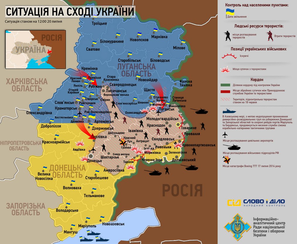 Силы АТО теснят боевиков: идет зачистка Дзержинска, армия подошла к Лисичанску (карта)