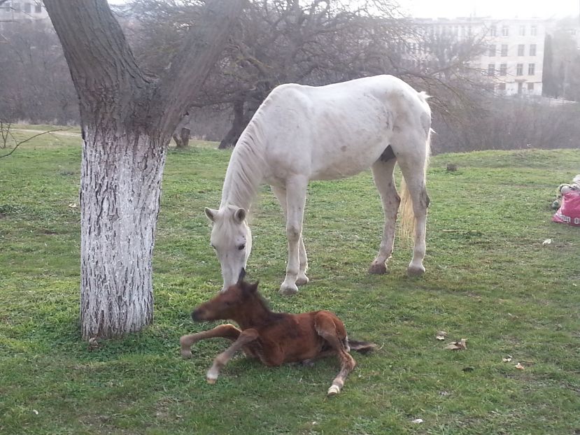 Лошади в балке и ее окрестностях пасутся часто, в основном с хозяйками, пишет Искра. Когда кобыла начала рожать, ее отвели немного в сторону, подальше от дороги и от людей. Помощь животному не понадобилась.