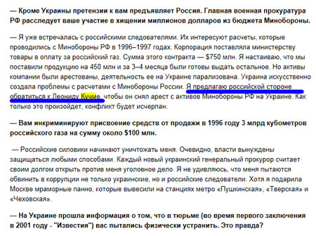 Во вступлении к “интервью” сказано, что “экс-премьер Украины Юлия Тимошенко рассказала “Известиям” о подоплеке нового уголовного дела, возбужденного украинской Генпрокуратурой в отношении нее”.