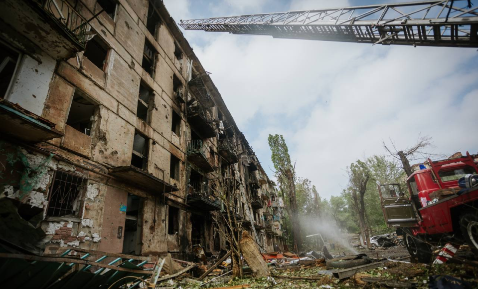 Поврежденная ракетным ударом войск РФ пятиэтажка в Кривом Роге, 13.06.2023. Фото: t.me/s/dnipropetrovskaODA