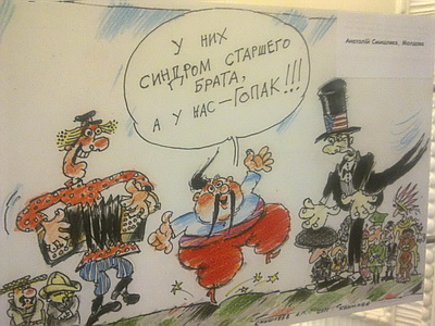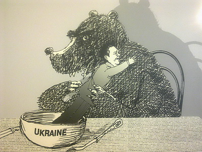 Показательно, что основная масса карикатур посвящена теме противостояния ЕС и НАТО с одной стороны и РФ с другой в определении внешнего вектора развития Украины.