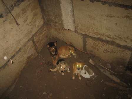 По ее информации, собаки прыгнули в трехметровую технологическую яму, расположенную в подвале одного из жилых домов, а выбраться оттуда не смогли.