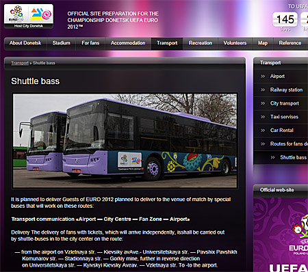 Официальный сайт подготовки Донецка к Евро-2012 в англоязычной версии содержит ошибки.