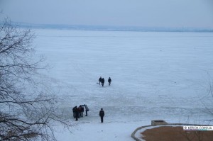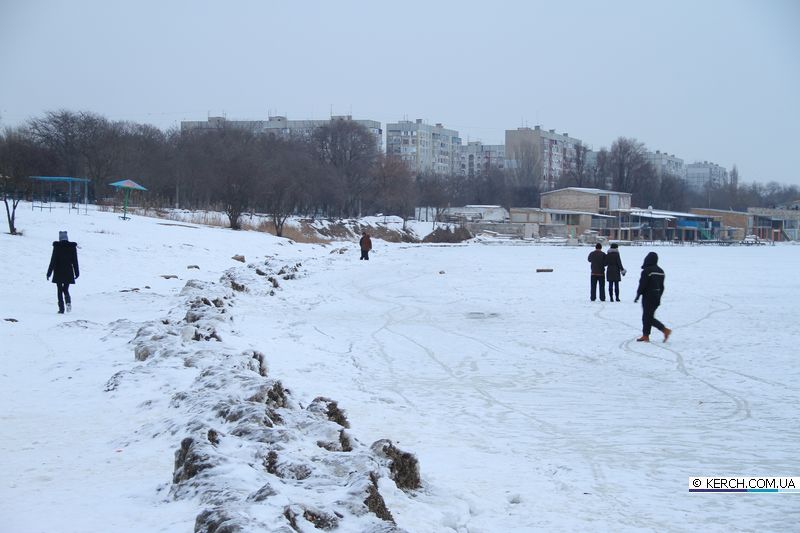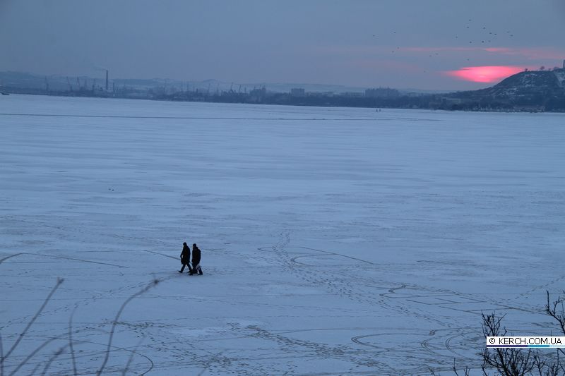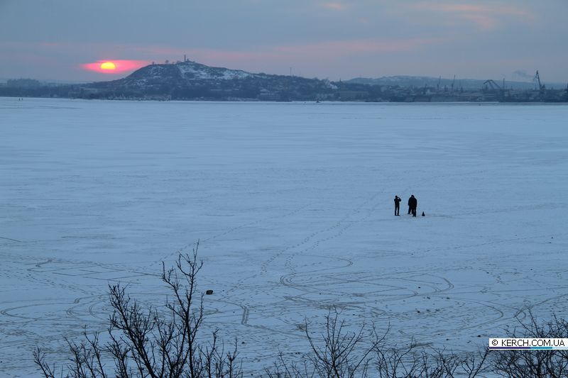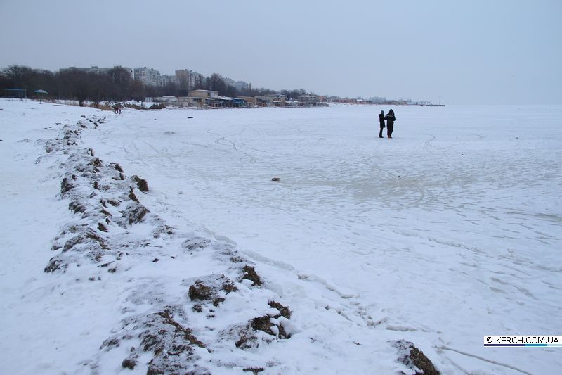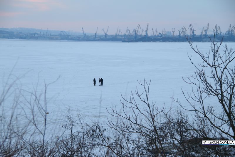 Прогулки по оледеневшему Керченскому проливу продолжаются. Народная забава называется «Кто дальше пройдет».