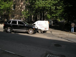 Около 17.00 1 июня 2012 года в Симферополе на перекрестке Хацко и Павленко Porsche Cayenne с номерами “МТС” въехал в “Таврию”. Об этом сообщил читатель “Центра”.