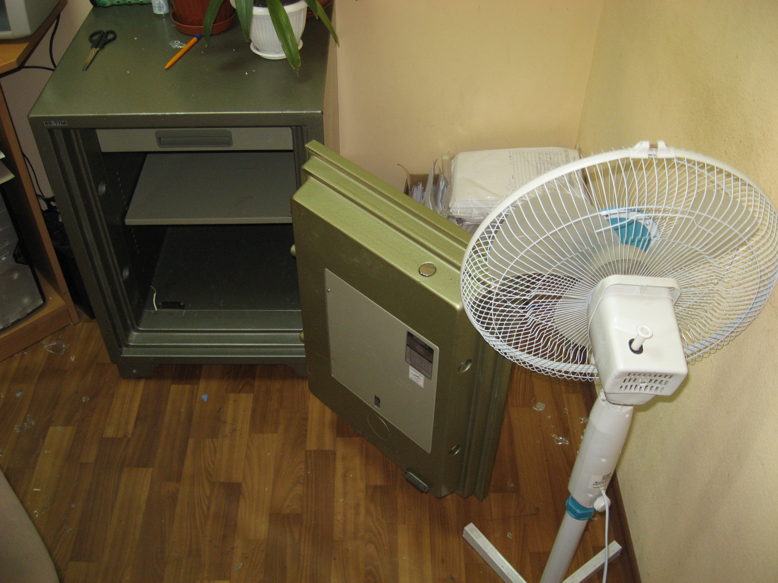 Вытащив деньги из сейфа, мужчина сложил их в халат, рукава которого предварительно завязал, соорудив нечто, напоминающее мешок.