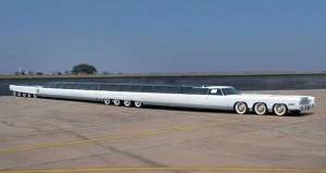 Согласно книге рекордов Гиннеса самым длинным автомобилем мира является 26-ти колесный лимузин, длина которого составляет 30 с небольшим метров. Его основное назначение отнюдь не езда по городским улицам, а выставки и снимки в кинофильмах.