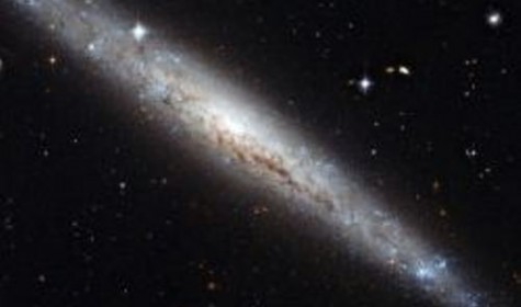 На опубликованном изображении хорошо видно, что в составе галактики имеется большое количество межзвездной пыли. Пыль заслоняет свет дальних звезд и выглядит на фотографии как сеть темных филаментов.