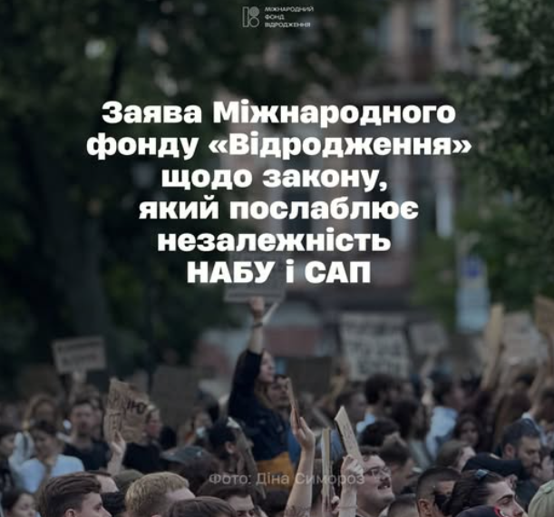 В фонде «Возрождение» призвали отменить закон о НАБУ и САП