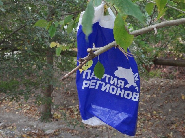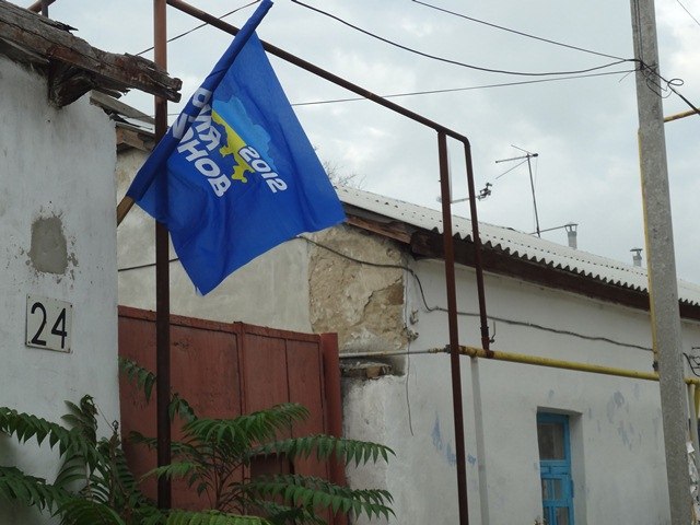 В Феодосии в день голосования на здании кафе, которое расположено на автостанции в центре города, развивается синий флаг Партии регионов. Такой же агитационный материал зафиксирован журналистом “Центра” и на доме по ул.Армянская.