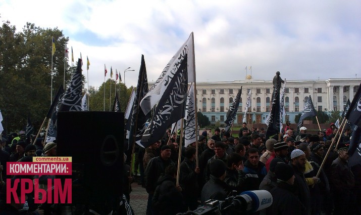 Запланированный форум превратился в митинг. Организаторы напомнили, что 6 октября в Симферополе была сорвана запланированная всекрымская женская исламская конференция «Культура и цивилизация. На пути к развитию».