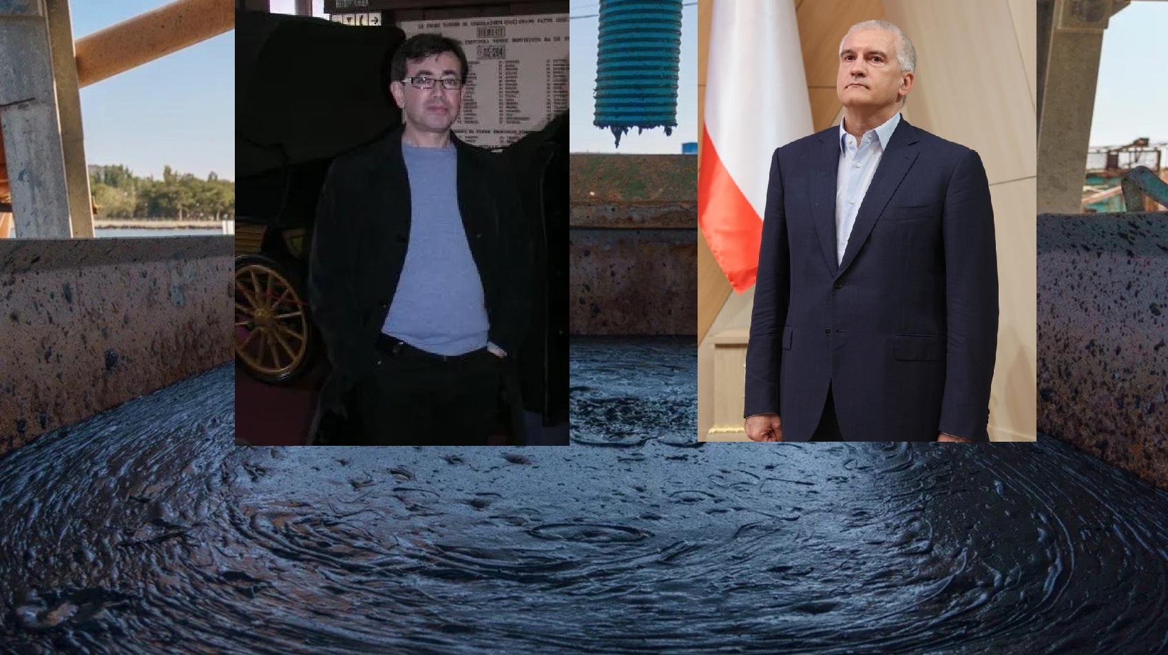 Роман Манусов, Сергей Аксенов и сакская грязь, добытая оккупационным предприятием «Крымская ГГРЭС». Фото: ok.ru, gazetacrimea.ru, rk.gov.ru. Коллаж: ЦЖР