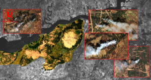 Супутникові знімки НПП “Олешківські піски” та прилеглих районів у червні-липні 2024 р. Фото: Google Earth, супутник Sentinel-2. Колаж: investigator.org.ua