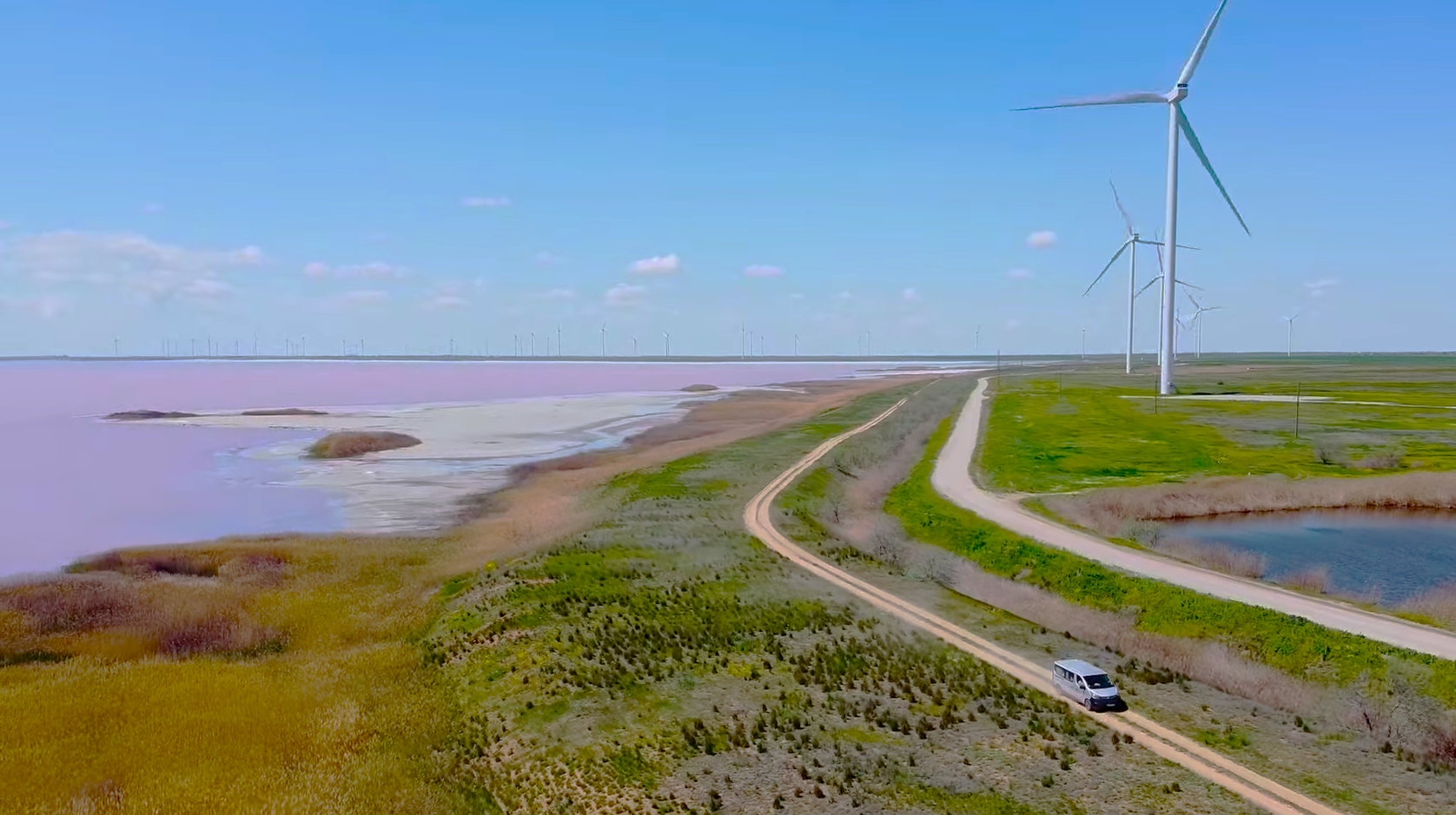 Вітрогенератори на берегах озера Сиваш на ТОТ Херсонської обл. Фото: соцмережі