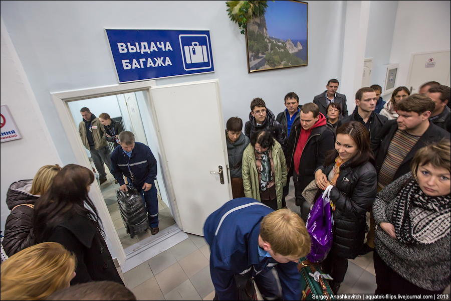 В аэропорту Симферополя для удобства пассажиров внутренних рейсов выдачу багажа перенесли с улицы, как это было раньше, в здание. Однако сама процедура выдачи своей абсурдностью вызывает недоумение и недовольство прилетающих. Об этом на своей странице в ЖЖ пишет блогер Сергей Анашкевич.