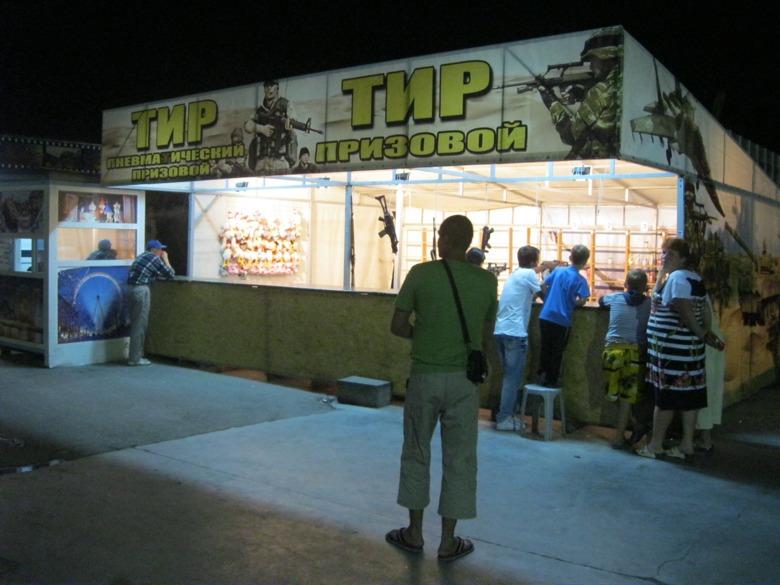Со вчерашнего дня на набережной Ялты появились новые аттракционы – тир, детская надувная горка и игровой музыкальный автомат. Кроме того, как сообщает корреспондент «Центра», сегодня ночью неизвестные работники начали устанавливать новые аттракционы.