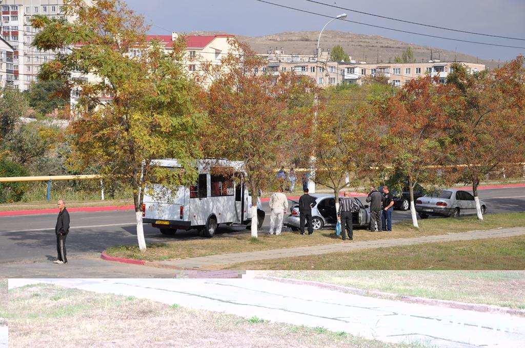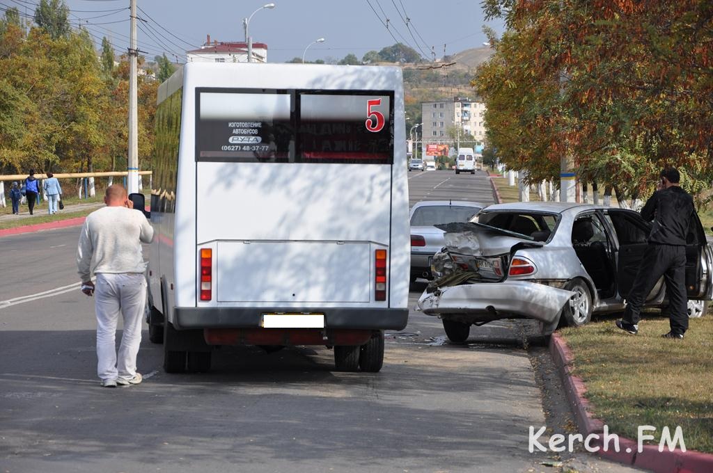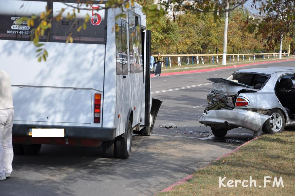 Маршрутное такси №5 двигалось по Камыш-Бурунскому шоссе в сторону центра города. В районе СТО “Форсаж” водитель маршрутки не справился с управлением и на полном ходу врезался в стоявшую у обочины “Мазду”. От сильного удара легковушку выкинуло на правую обочину и сплющило заднюю часть авто.