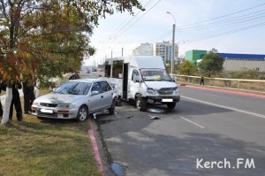 Сегодня в Керчи около 10:20 маршрутное такси №5 на полном ходу врезалось в стоявшую “Мазду”, передает ТРК “Бриз”.