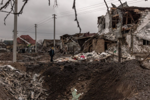 Зруйновані від російських обстрілів житлові будинки у Зміївці, лютий 2023 року. Фото: Фейсбук/Marina Markina