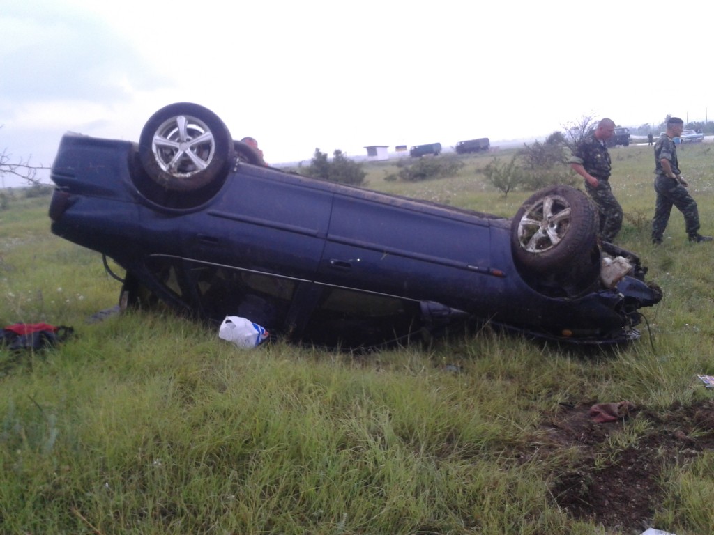 В Сакском районе на автодороге Евпатория-Крайнее перевернулся RENAULT SAFRANE с туристами из Николаевской области.