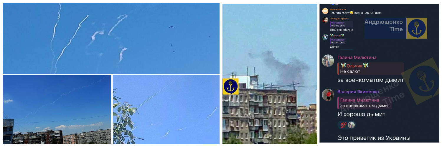 Робота російського ППО над житловими кварталами Маріуполя. 20.06.2024р. Джерело фото: https://t.me/andriyshTime Колаж: investigator.org.ua