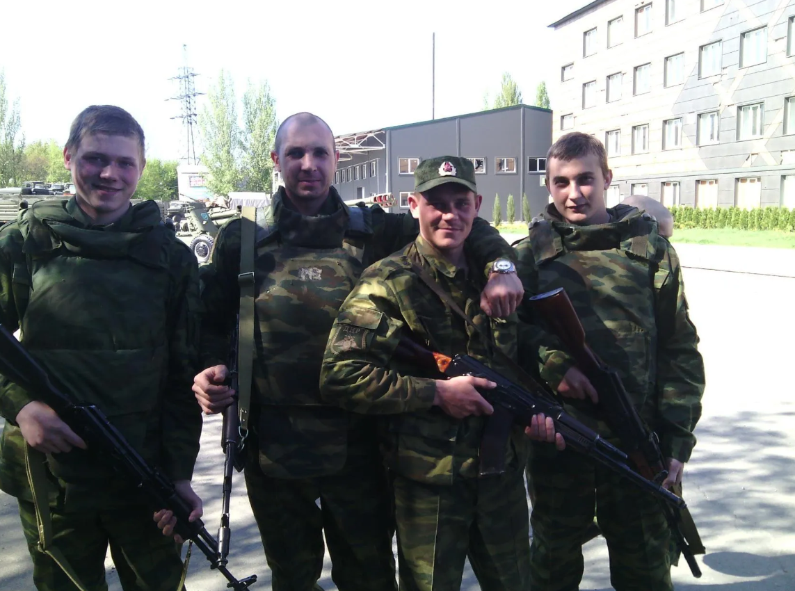 Олександр Черенков зі Сніжного (другий праворуч), якому мали винести вирок, разом з іншими бойовиками «ДНР», серпень 2015 року. Фото з соцмережі