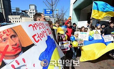 В Сеуле поблизости посольства России в Южной Корее состоялся пикет, организованный представителями украинской диаспоры против военной оккупации РФ Крыма.