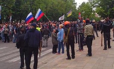 Накануне вечером пророссийски настроенные протестующие начали штурмовать с применением огнестрельного оружия здание Луганского областного управления МВД Украины.