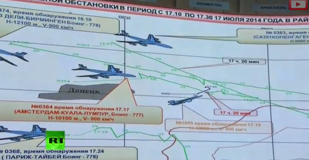 «Данный воздушный объект устойчиво наблюдался радиолокационными постами Усть-Донецка и Бутурино в течение четырех минут», — сказал генерал. По словам представителя Минобороны, этот объект удалось засечь только из-за набора им высоты. После крушения Boeing, по версии Минобороны, он барражировал в районе падения обломков.