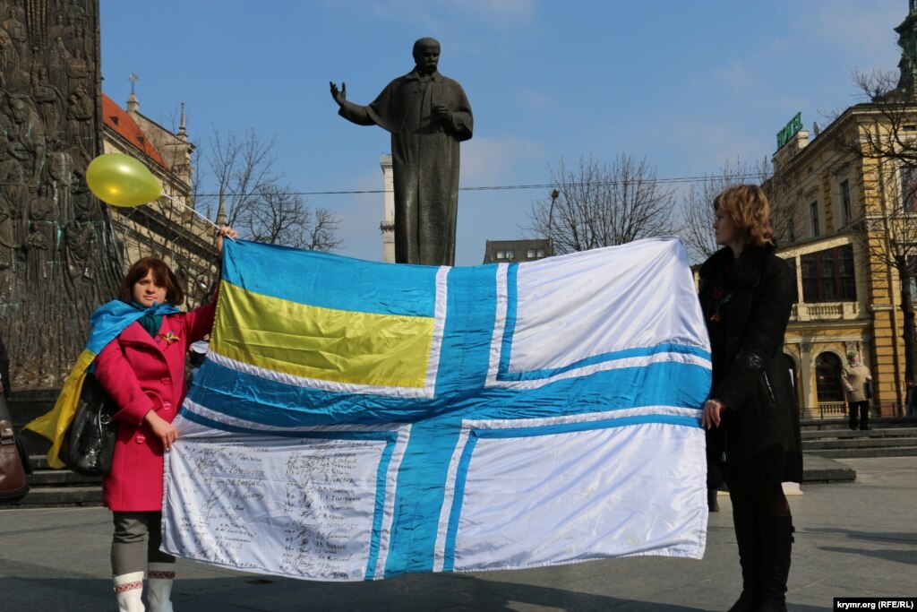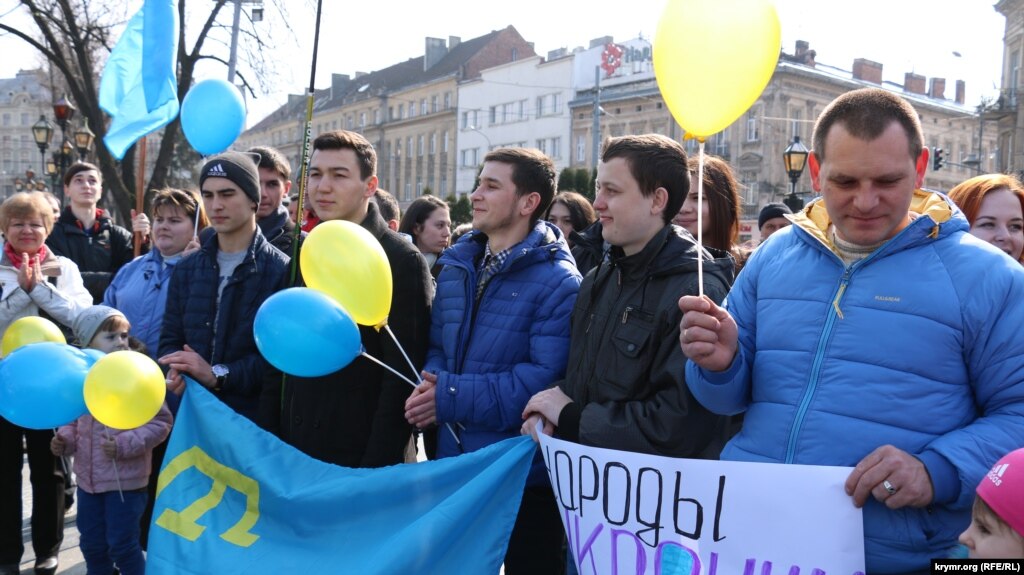В воскресенье 15 марта во Львове крымские активисты и общественные организации провели акцию, посвященную годовщине крымского референдума. Активисты вышли к памятнику Тарасу Шевченко на проспекте Свободы с лозунгами «Крым ‒ это Украина», «Донбасс + Крым ‒ общая боль» и «Путин, руки прочь от Украины», – сообщают Крым.Реалии.