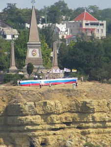 Русские активисты в день празднования 20-летия независимости Украины развернули на берегу главной бухты Севастополя огромный флаг России, передает «Новый Регион».