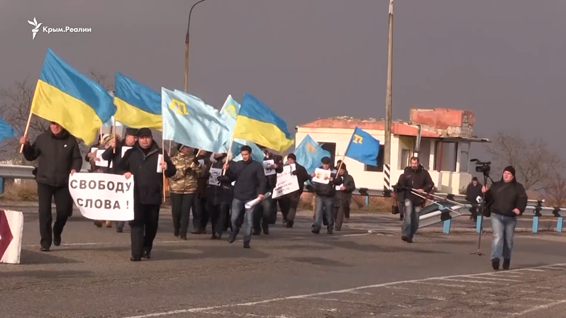 «Именно в этот день, когда мы говорим о правах человека, мы решили выйти на приграничную территорию и заявить о том, что далее, за этим шлагбаумом – территория бесправия. Мы должны привлечь международное сообщество, для того, чтобы оно воздействовало на Российскую Федерацию, которая грубо нарушает права человека в Крыму. По нашим данным, на сегодняшний день 38 человек являются политическими заключенными», – сказал журналистам член Меджлиса, глава правления Крымскотатарского ресурсного центра Эскендер Бариев.