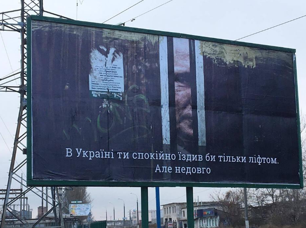 Ранее в Херсонской области появились билборды с изображением Путина в лифте.