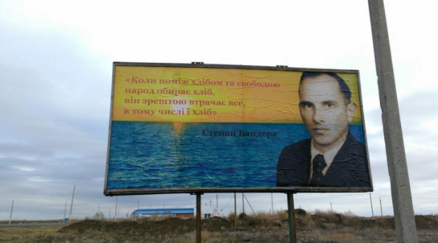 Возле административной границы с оккупированным Крымом (на контрольно-пропускном пункте «Чонгар») установили билборд с изображением лидера украинских националистов Степаном Бандерой.