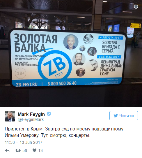 Как сообщает в Twitter адвокат Марк Фейгин, В Крыму уже висят афишы, на которых анонсировано выступление коллектива в Балаклаве.