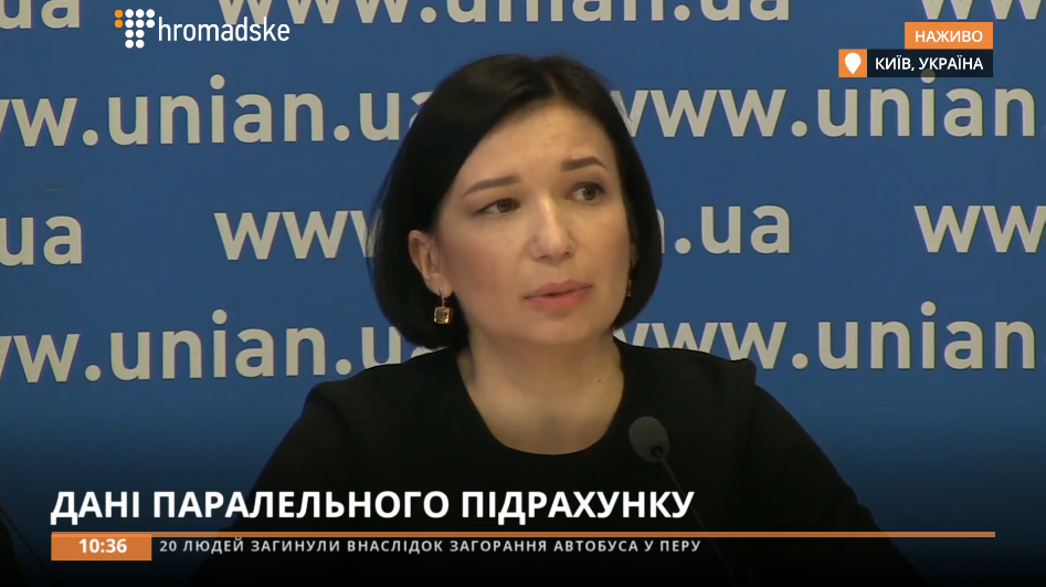 Результаты PVT (параллельного подсчета голосов на основе статистической выборки) озвучила председатель правления ОПОРЫ Ольга Айвазовская.