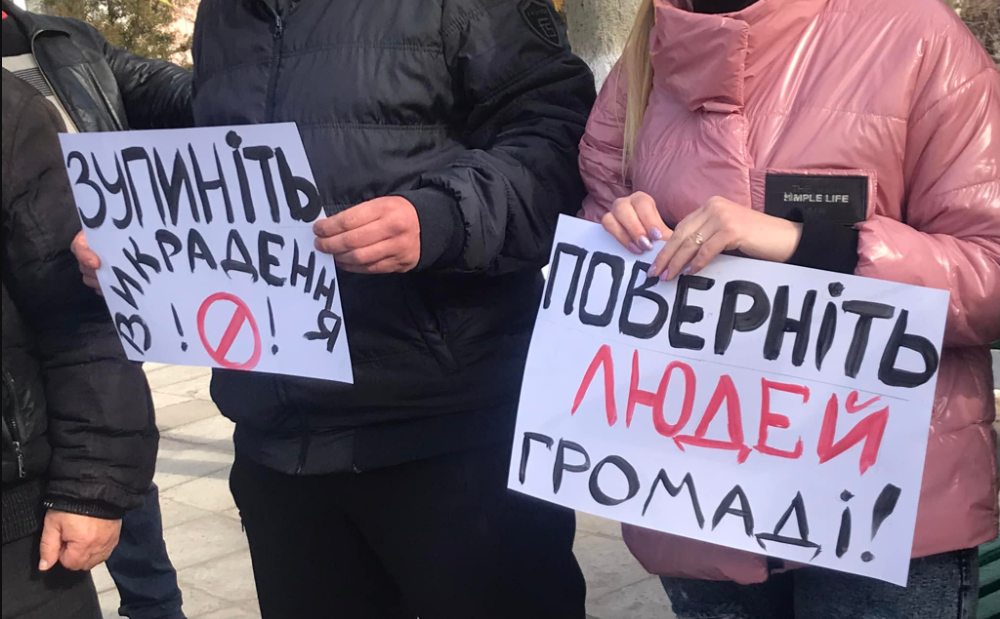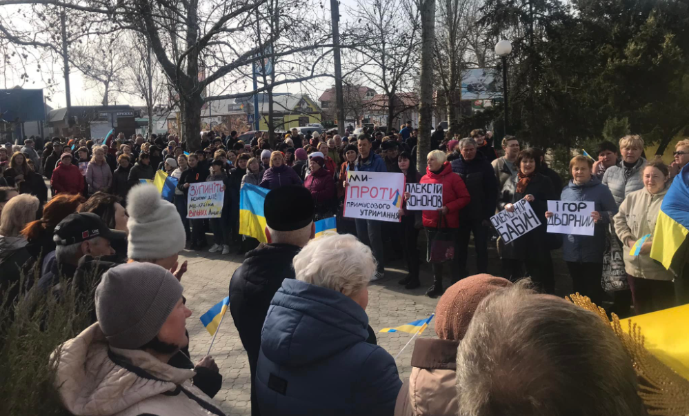 В Херсонской области в Голой Пристани 31 марта состоялась мирная патриотическая акция, участники которой требовали вернуть захваченных ранее военными РФ местных жителей.
