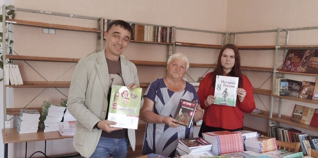 Колаборанти Ігор Бжезицький, Любов Дейнеко (в центрі) готуються до відкриття школи в Зеленому Поді Окупаційні пабліки