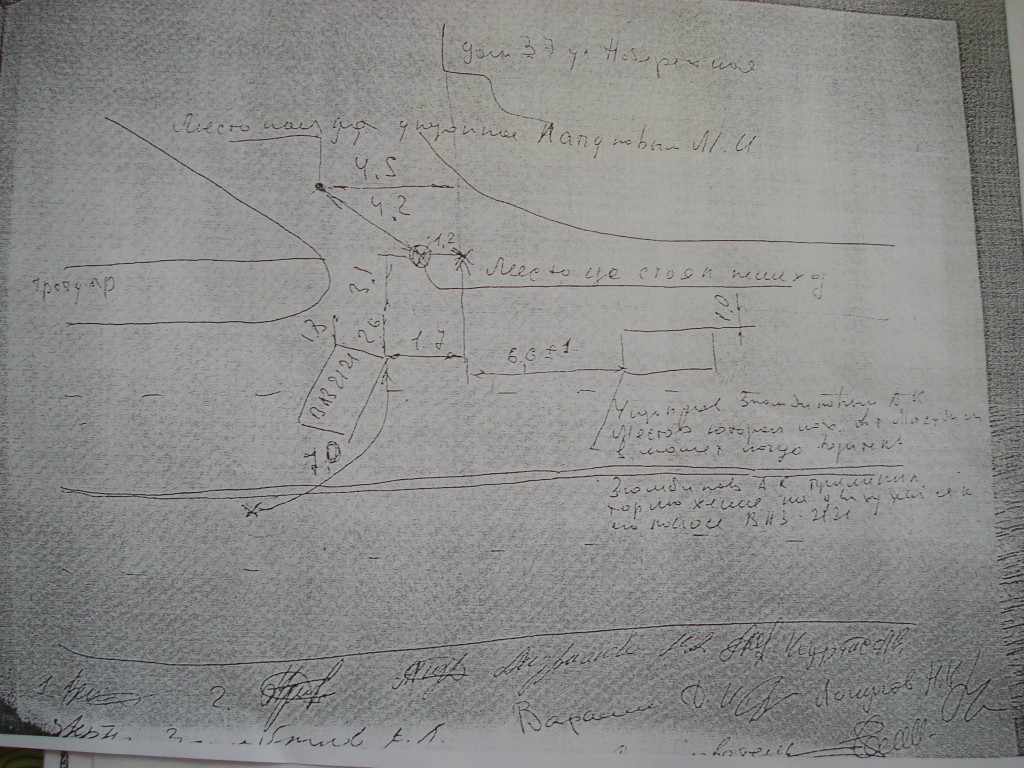 На основании показаний водителя «Нивы», машина которого даже не была обозначена на схеме ДТП, и данных протокола осмотра места происшествия следователь Умеров с приглашенным им экспертом Исаковым получили первую важную цифру – расстояние от «Нивы» до начала следов торможения «Митцубиши» — 14.4 метра.