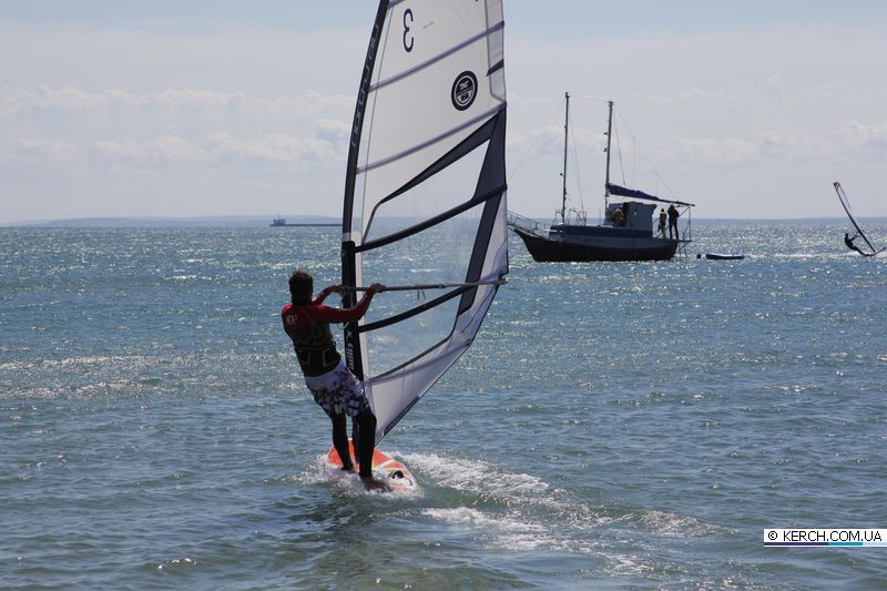Керченская школа виндсерфинга устроила настоящий праздник. На пляже в Героевке можно было не только поучаствовать в конкурсах и посмотреть на серфингистов, но и самому стать на доску.