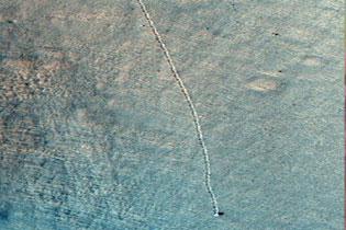Сам же Фил обращает внимание еще кое на что странное. Если увеличить фото борозды, то можно разглядеть, что она прерывистая. Будто бы булыжник то катился, от останавливался передохнуть. И при этом двигался равные промежутки времени.